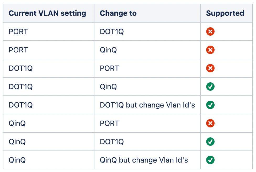Supported VLAN changes